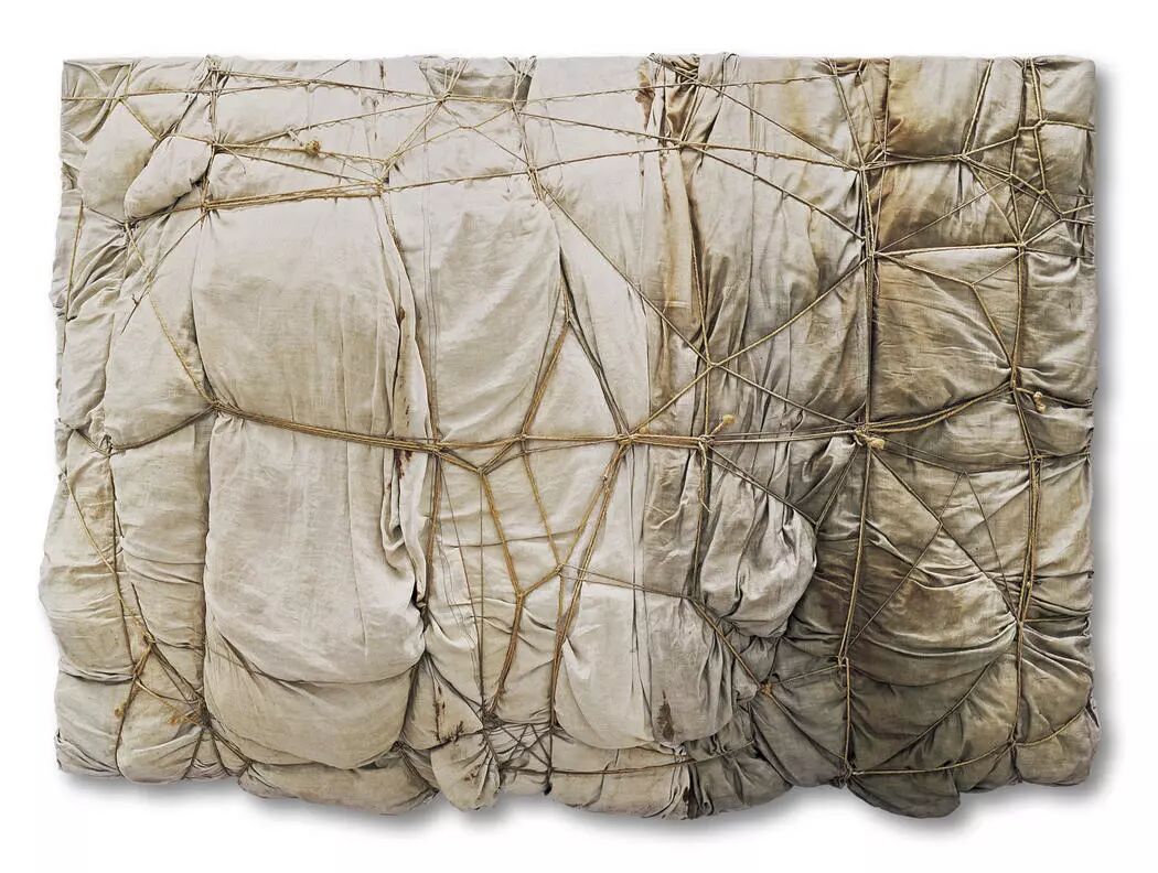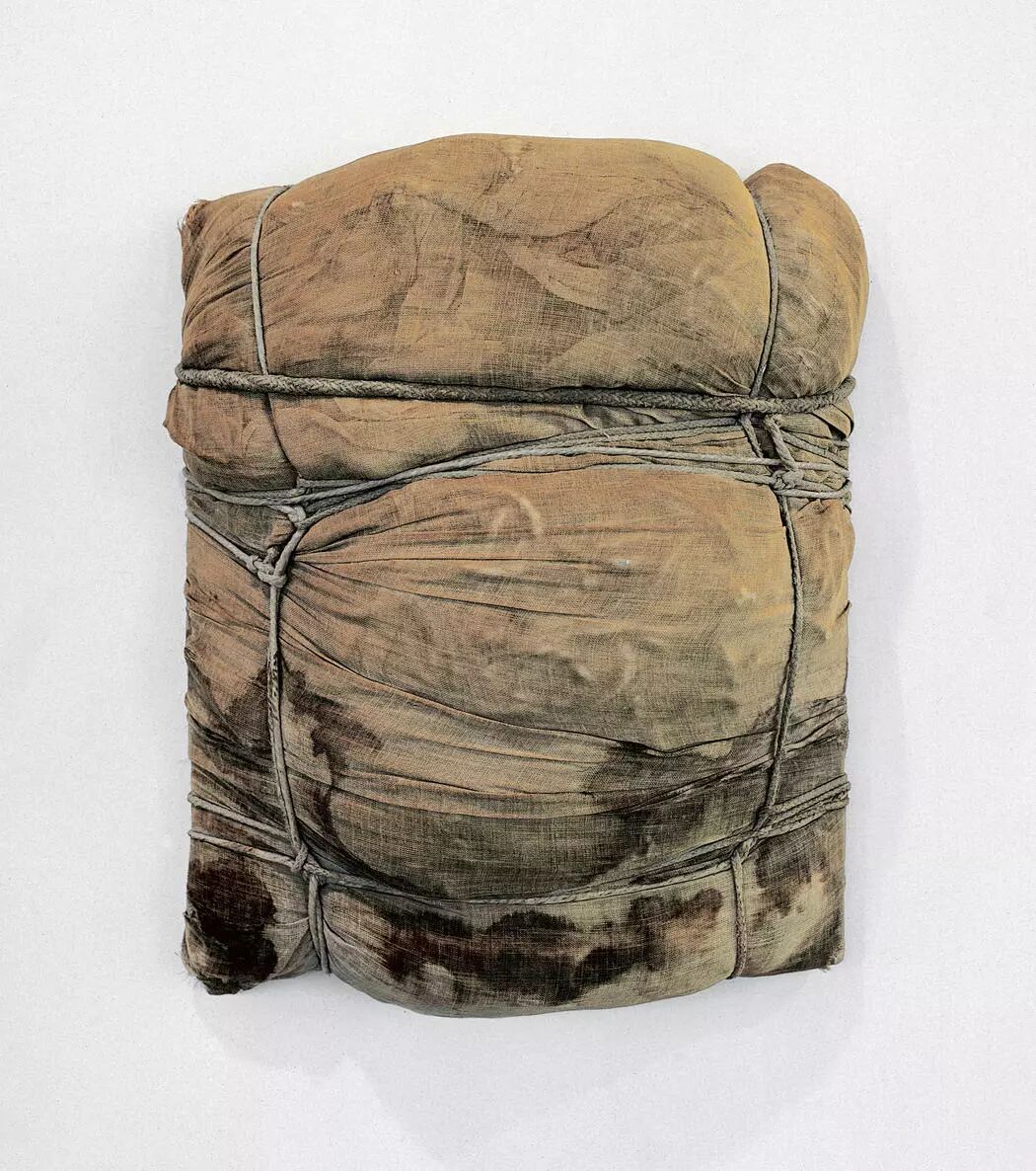 包裝里是他們粗糙的,不起眼的,似乎是遺留下來(lái)的織物用來(lái)包裹日常用品,創(chuàng)造了一個(gè)既困難又粗糙的藝術(shù)品。這些材料暗示了工作的臨時(shí)性和過(guò)渡性,就像游牧生活的旅行包裹——包裹是存在的,但在短時(shí)間內(nèi),可以在眨眼之間停止存在。藝術(shù)作品使無(wú)常的創(chuàng)造變成永恒。