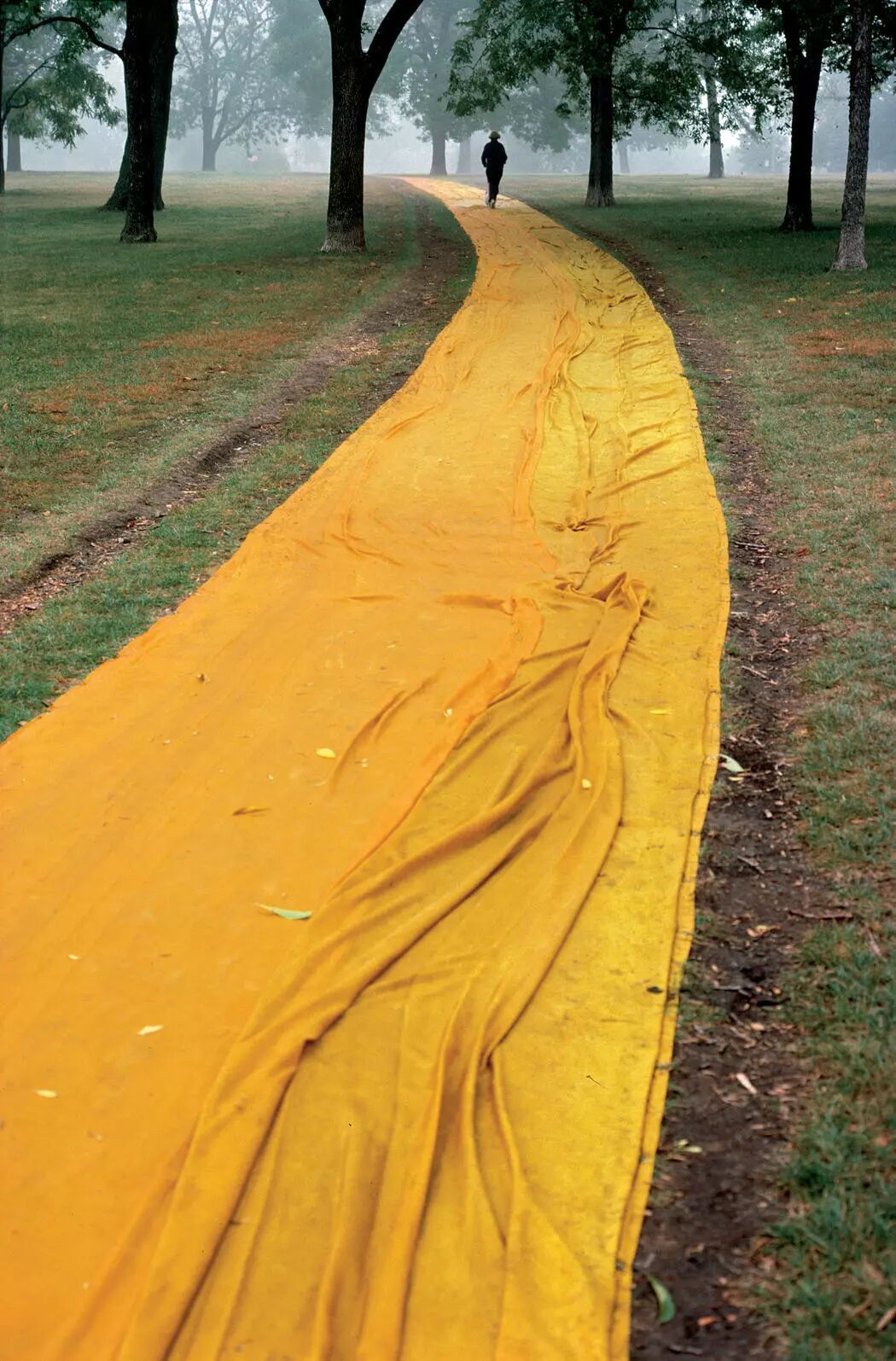 位于密蘇里州堪薩斯城雅各布·洛斯紀(jì)念公園的包裹式步道,由135000平方英尺(12540平方米)的藏紅花色尼龍織物組成,覆蓋了2.7英里(4.4公里)的正式花園步道和慢跑道。