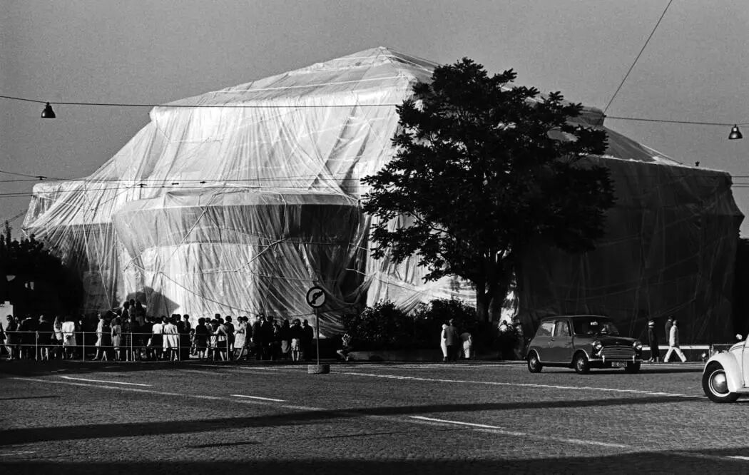 經(jīng)過(guò)一場(chǎng)跨越七八十年代和九十年代的斗爭(zhēng),國(guó)會(huì)大廈的包裝工作于1995年6月完成。兩周以來(lái),建筑被銀色的織物包裹著,由藍(lán)色的繩索塑造,突出了宏偉建筑的特點(diǎn)和比例。